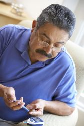 Man looking at glucose meter.