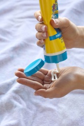 • Apply the sunscreen to dry skin about 15 to 30 minutes before going outdoors. This gives it time to be absorbed.